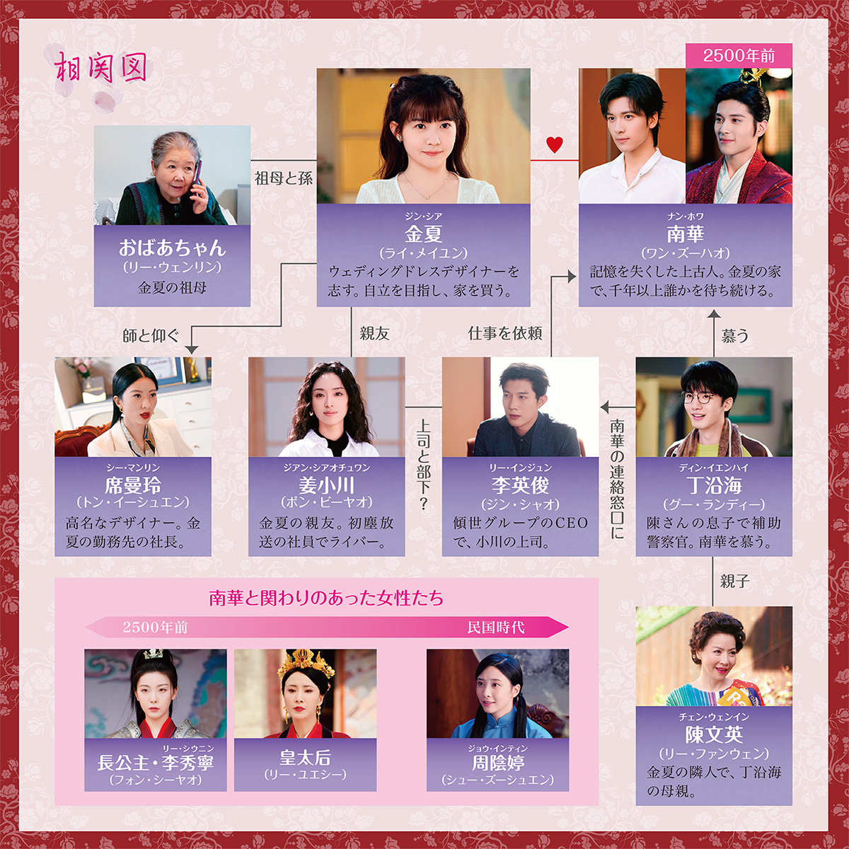 一人の人を千年以上も待ち続けるほど一途で、温かく誠実で献身的なスパダリ古代人・南華(ナン・ホワ)を演じるのは、身長189cmの高身長で、中国伝媒大学に在学中の超新星ワン・ズーハオ。古典的な気品と澄んだ眼差しを持つ彼は、「台湾有名モデル育成の母」と称され、リン・チーリンやイーサン・ルアンなど一流スターを発掘した実績を持つプロデューサーのジャン・イーロンに見出され大抜擢となった。本作の後も出演作が続き、今後の活躍が期待されている彼が演じる南華から目が離せない!